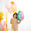 Balon foliowy w kształcie jajka z nadrukiem Wielkanocnego zajączka.