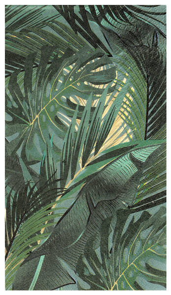 Serwetki papierowe w kolorze zielonym, z nadrukiem liści palmowych.