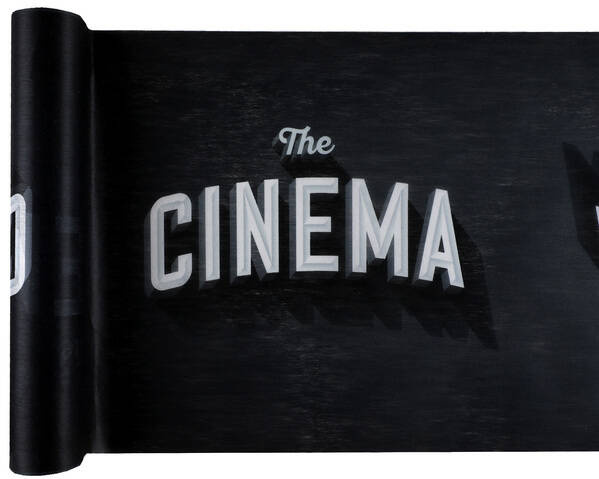 Produkt w kolorze czarnym, z napisem "The cinema".