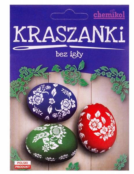 W zestawie barwniki spożywcze do jajek wielkanocnych oraz naklejki.