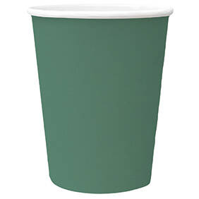 Zestaw kubeczków papierowych w kolorzebutelkowej zieleni.