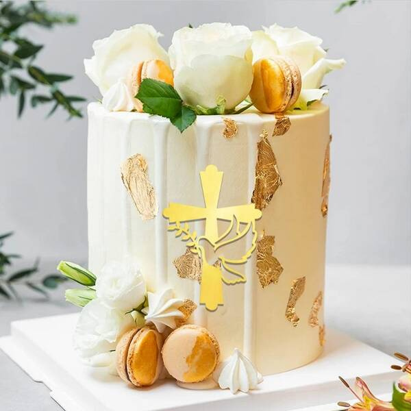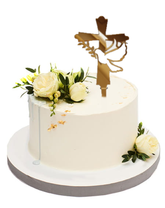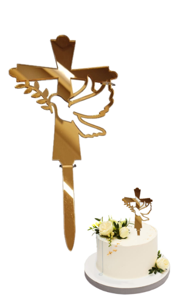 Topper akrylowy lustrzany w kształcie krzyża.