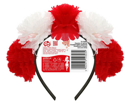 OPASKA NA GŁOWĘ 5 KWIATÓW Rozmiar: uniwersalny Rodzaj: opaska Kolor: biały, czerwony Ilość: 1 szt. Producent: Godan
