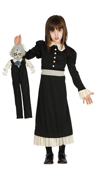 • Czarna, długa sukienka w stylu dawnych strojów.