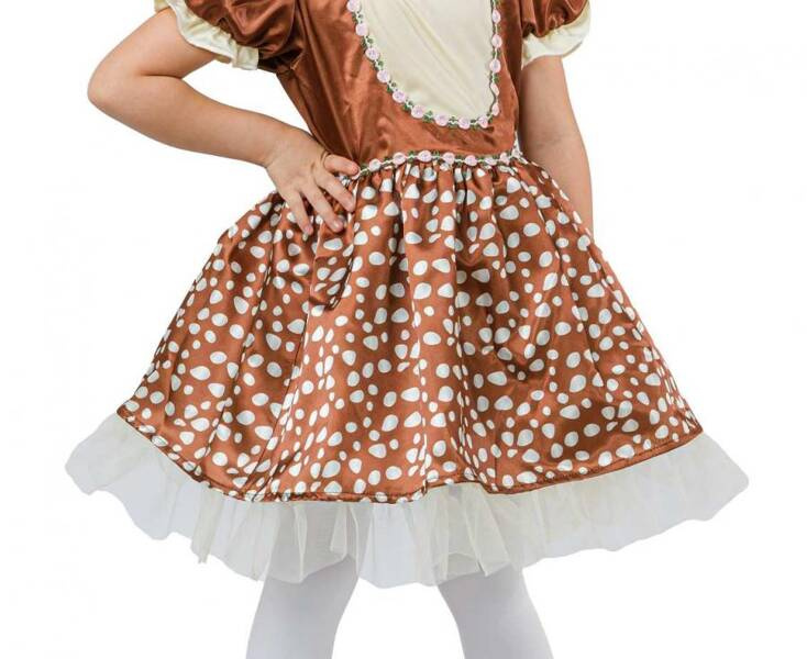 Strój w kolorze brązowym zdobiony charakterystycznymi kropkami.