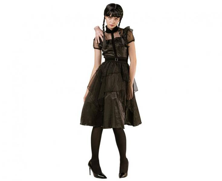 Zestaw dla dzieci Gotycka Uczennica Suknia Balowa (czarna sukienka, pasek), rozm. 110/120 cm