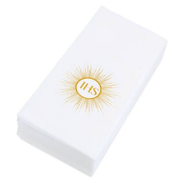 Produkt w kolorze białym ozdobiony złotym IHS.