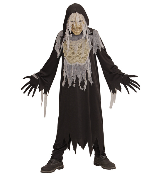 Długa czarna szata z kapturem. Na klatce piersiowej doszyta aplikacja przedstawiająca wnętrze klatki piersiowej.