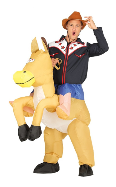 Strój przedstawia kowboja siedzącego na koniu.