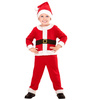 Spodnie na gumce z białym materiałem na końcu nogawek. Czapka z białym pomponem i rantem.
