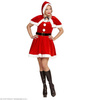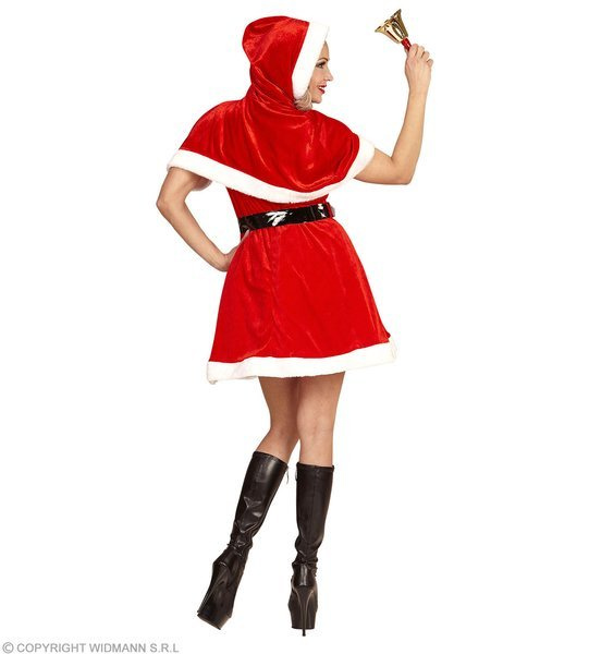 Sukienka lekko rozkloszowana, na ramiączkach. Pelerynka z kapturem wiązana pod brodą.