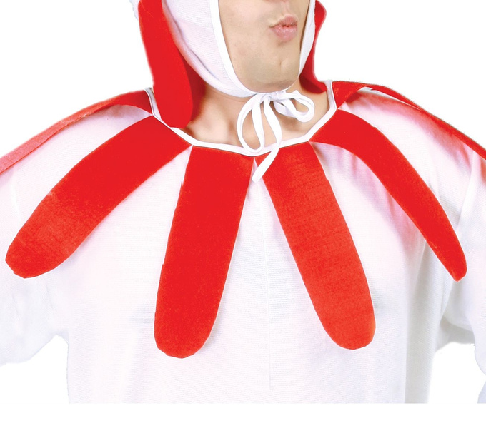 Kombinezon w kolorze białym z długim rękawem oraz nogawkami sięgającymi przed kolana.
