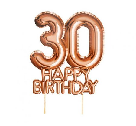 DEKORACJA NA TORT URODZINOWY, NA 30 URODZINY Piker, topper (tzw. toper na tort), czyli dekoracja, którą umieszcza się na torcie urodzinowym. Piękna ozdoba tortu, którą można stosować (przy zachowaniu odległości) razem ze świeczkami lub fontannami iskier. Piker Glitz & Glamour Wysokość: 22 cm Szerokość: 15 cm Ilość sztuk w opakowaniu: 1 Kolor napisu: złoto-różowy Treść napisu: 30 HAPPY BIRTHDAY Idealna ozdoba na 30-te urodziny.