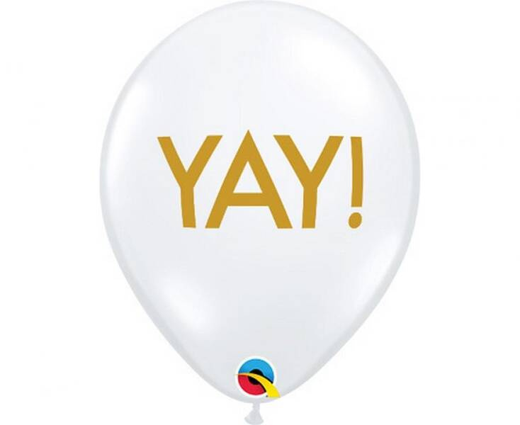 BALONY PRZEZROCZYSTE Z NADRUKIEM YAY! Rozmiar w calach: 11” Kolor: przezroczysty W opakowaniu: 25 szt. Producent: Qualatex