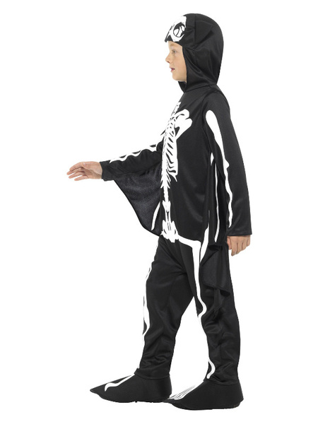 Na całej powierzchni strój pokryty jest nadrukami, które przedstawiają szkielet nietoperza.