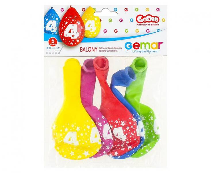 BALONY WISZĄCE NADRUK 4 MIX KOLORÓW 30 CM 5 SZT.