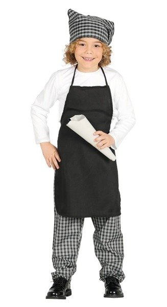 Fartuch w kolorze czarnym, wiązany w pasie.