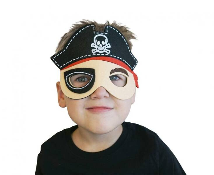 MASKA PIRATA DLA DZIECI Szerokość maski: 19,5 cm Wysokość maski: 13 cm Materiał: 100% filc Maska przeznaczona jest dla dzieci. Produkt nieodpowiedni dla dzieci poniżej 3 roku życia.