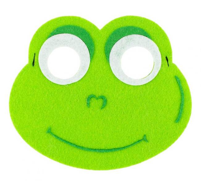 MASKA ŻABKI DLA DZIECI Szerokość maski: 17 cm Wysokość maski: 15 cm Materiał: 100% filc Maska przeznaczona jest dla dzieci. Produkt nieodpowiedni dla dzieci poniżej 3 roku życia.