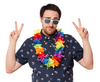 Naszyjnik hawajski wykonany z materiałowych kwiatów.