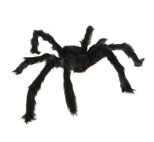 DUŻY PAJĄK Ilość sztuk w opakowaniu: 1 Wymiar: ok. 60 cm. Duży, sztuczny włochaty pająk z czerwonymi oczami. Dzięki giętkim odnóżom, można ustawić pająka w dowolnej pozycji.