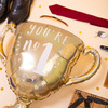 Balon foliowy Puchar w kolorze złotym z białym nadrukiem.