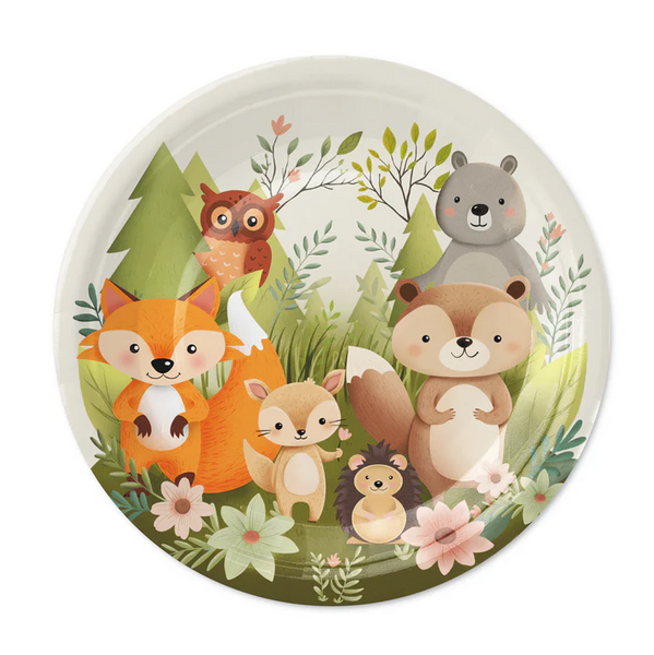 Talerzyki papierowe z nadrukiem zwierzątek.