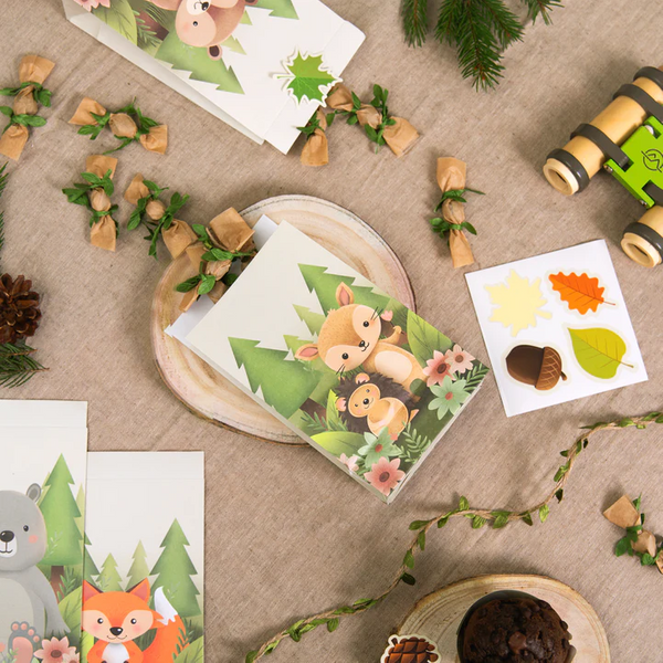 Torebki papierowe z nadrukiem leśnych zwierzątek.