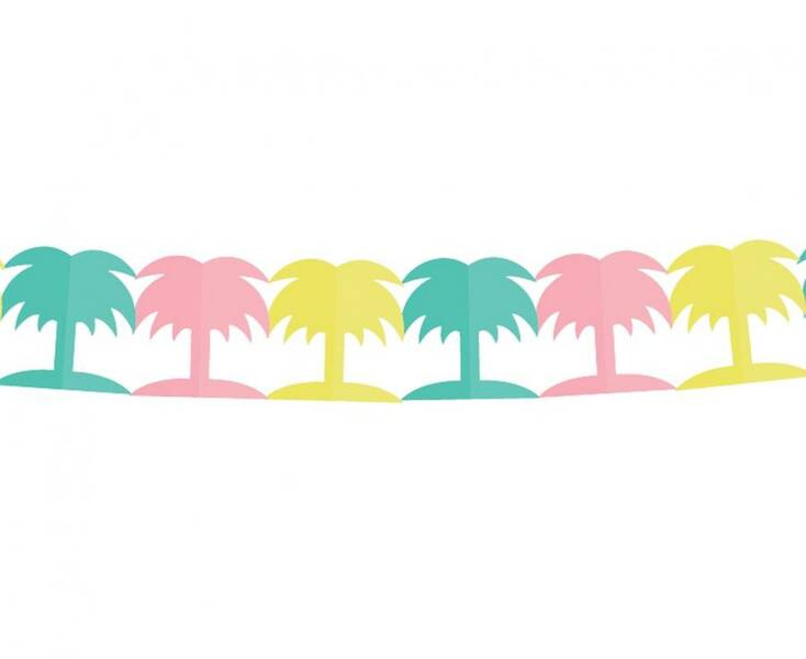 GIRLANDA KOLOROWE PALMY Długość: 360 cm Wysokość: 18 cm Szerokość palmy: 17,8 cm Materiał: papier Kolor: różnokolorowy W opakowaniu: 1 szt. Producent: Godan S.A.