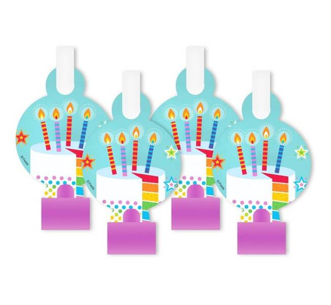 GWIZDKI PAPIEROWE Z MEDALIONEM KOLOROWY BAL Zestaw zawiera 4 sztuki gwizdków. Każda trąbka posiada plastikowy ustnik. Rozwijają się na długość 25 cm.