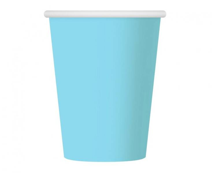Kubeczki papierowe w kolorze jasnoniebieskim.