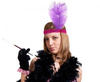 Opaska w stylu retro w kolorze fuksji z piórkiem. Mocowana na elastycznej gumce.