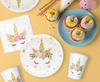 - Kolorowe kubeczki ozdobione radosnym nadrukiem jednorożca.