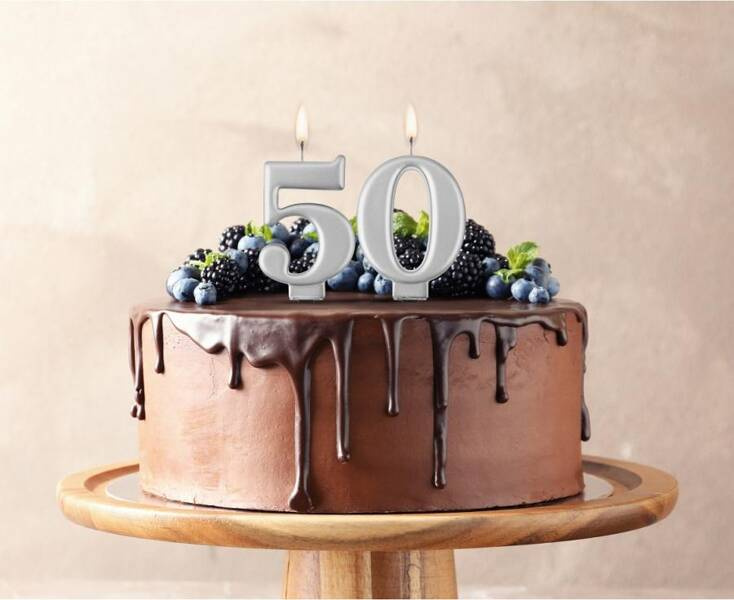 ŚWIECZKA CYFERKA 5 METALIK SREBRNA 8 CM
