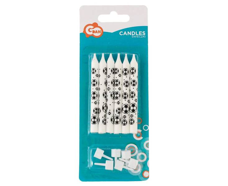Świeczki urodzinowe z nadrukiem piłki nożnej.