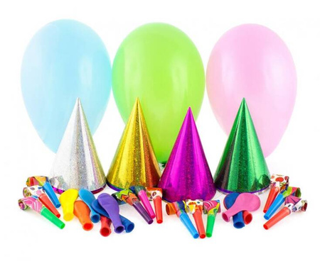ZESTAW URODZINOWY BALONY CZAPECZKI GWIZDKI 36 SZT