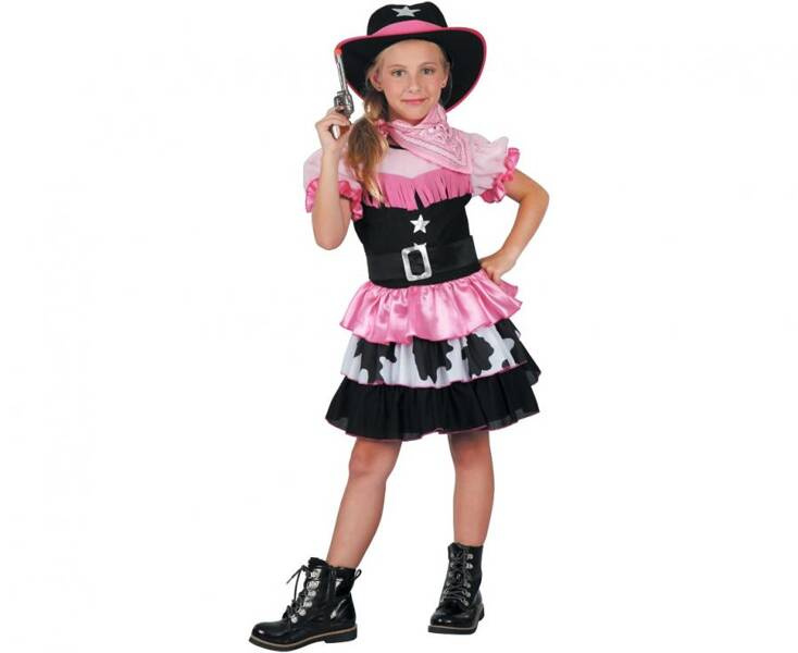 Strój dla dzieci Różowa Kowbojka (kapelusz, sukienka, apaszka, pasek), rozm. 110/120 cm, KK