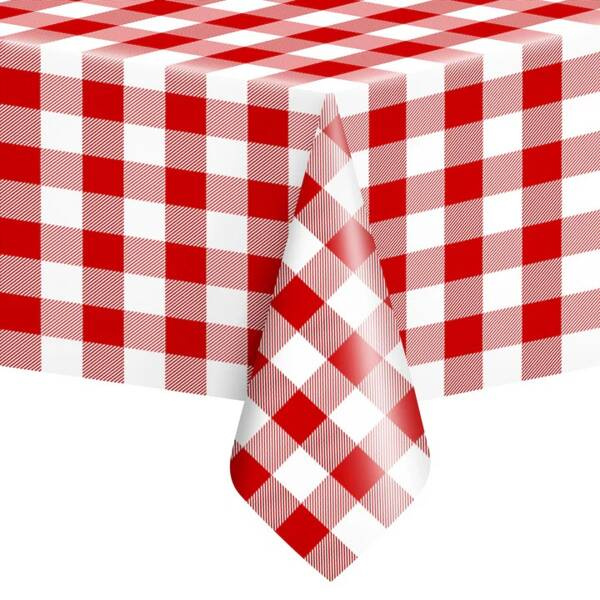 OBRUS W KRATKĘ CZERWONO-BIAŁY 137X274 CM