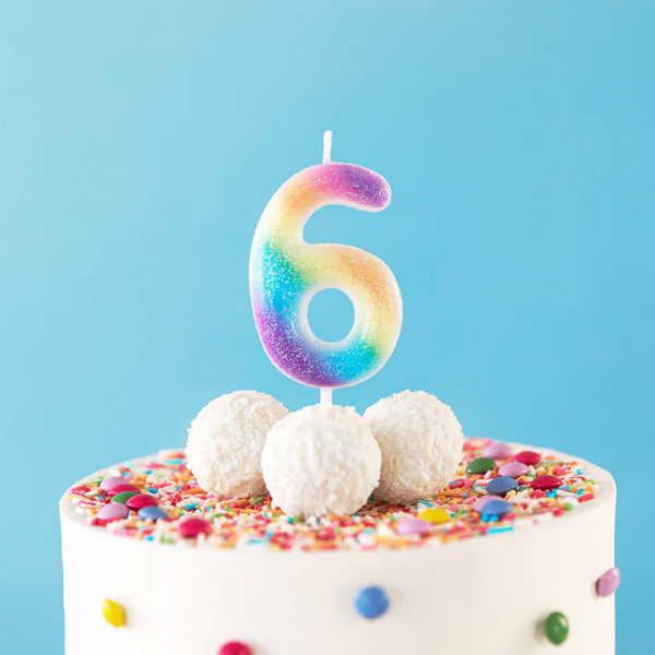 Świeczka urodzinowa w kształcie cyfry 6.