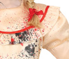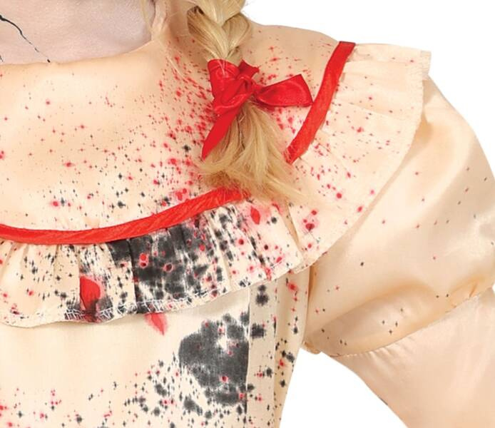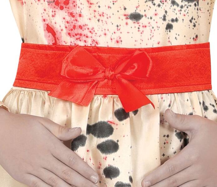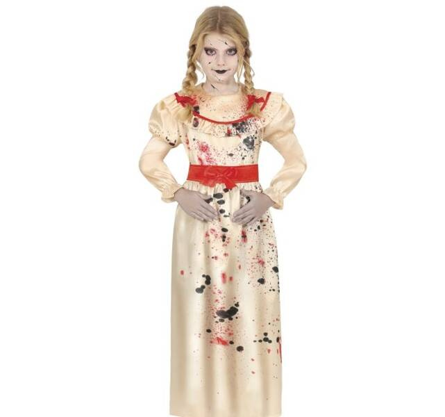 Długa suknia w kolorze beżowym z imitacją sztucznej krwi.