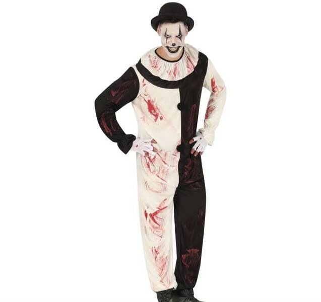 Poplamiony sztuczną krwią.