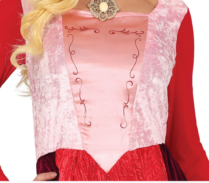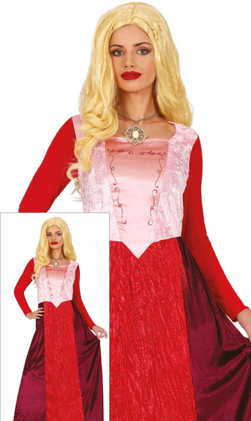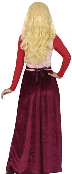 Suknia czarownicy w kolorze czerwono-bordowym.