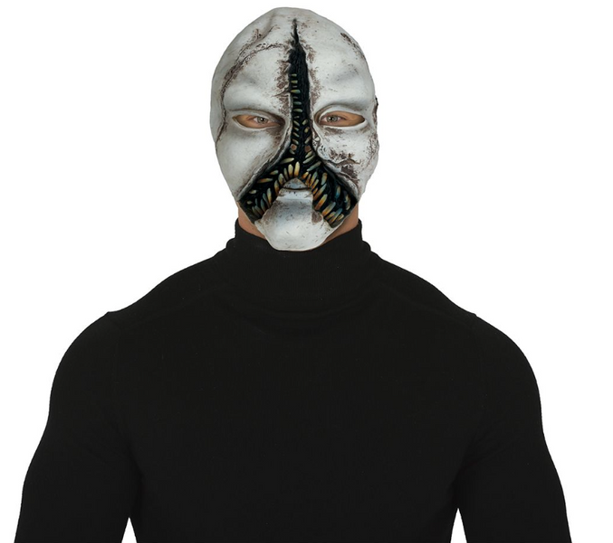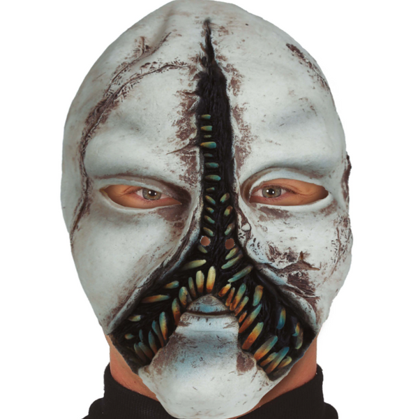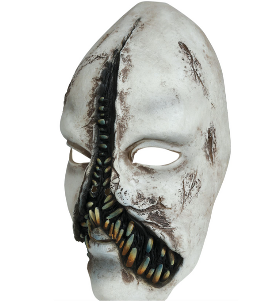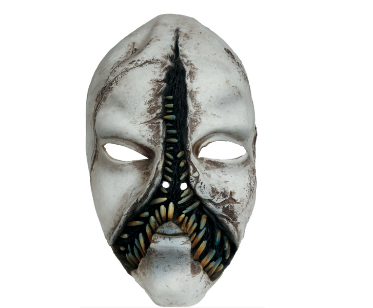 - Realistyczna, potworna twarz z groteskowym pęknięciem odsłaniającym kolorowe, ostre zęby.