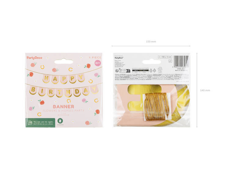 Baner papierowy z napisem "HAPPY BIRTHDAY".