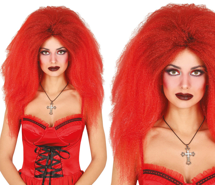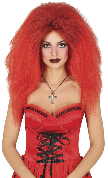 Peruka w czerwonym kolorze z czarnymi pasemkami.