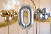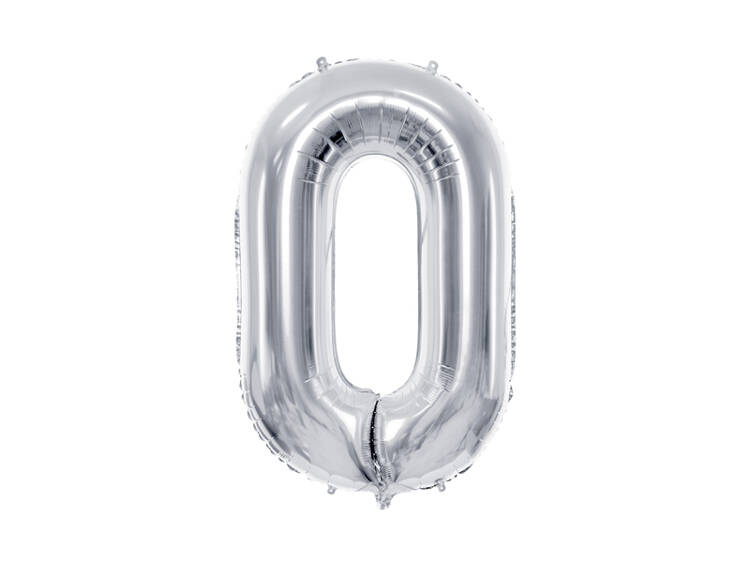 Balon foliowy cyfra ''0'' w kolorze srebrnym.