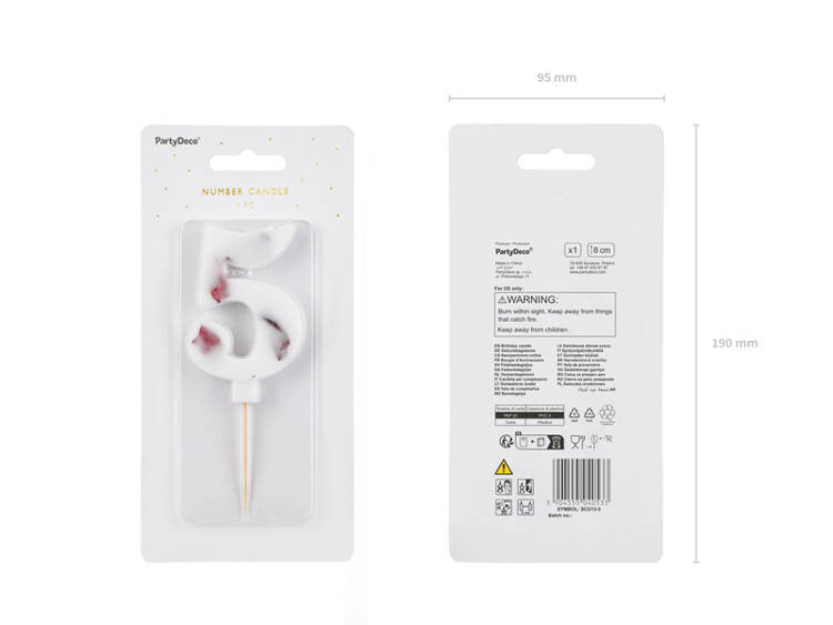 Świeczka urodzinowa cyfra "5" z płatkami kwiatów.