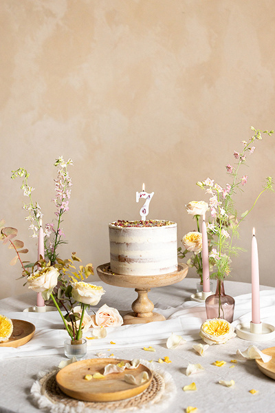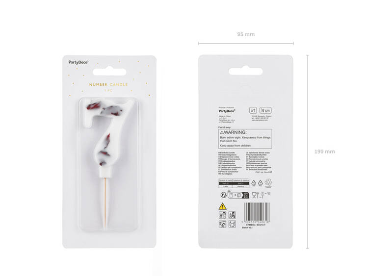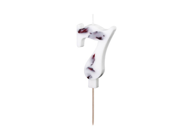 Świeczka urodzinowa cyfra "7" z płatkami kwiatów.
