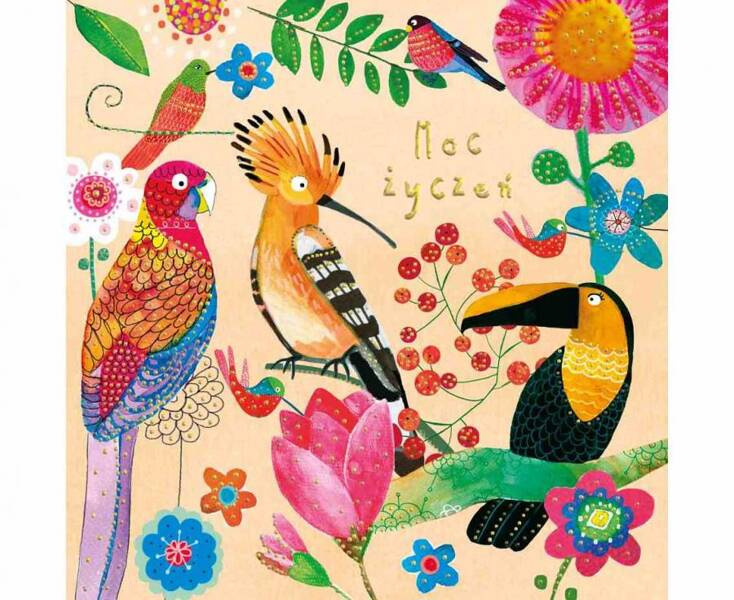 KARTKA OKOLICZNOŚCIOWA URODZINOWA PTASZKI 15 X 15 CM
