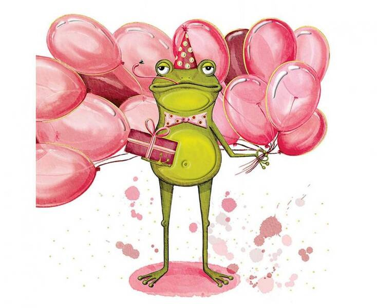Kartka Urodzinowa z Żabą i Balonami.